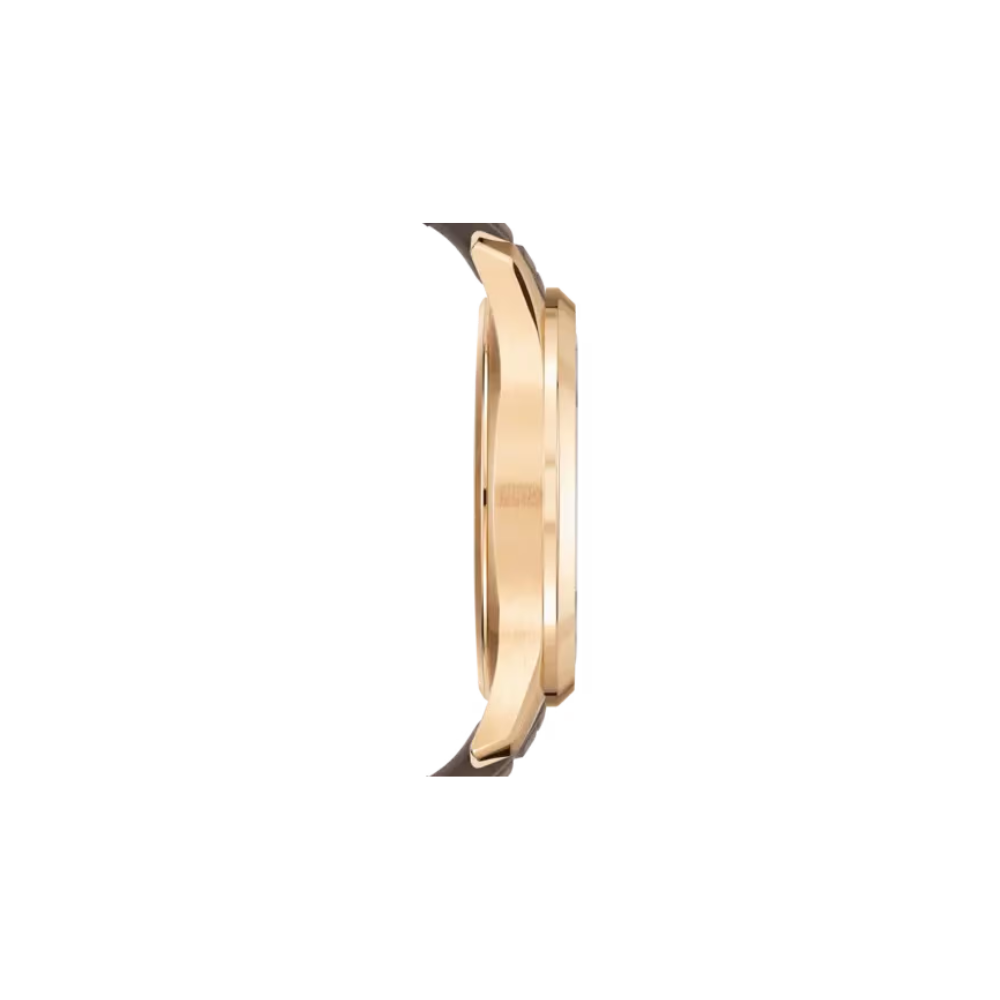 Dial: Embossed chocolate brown dial with gold applied numerals and luminescent hands