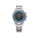 • Dial: Natural silver sheen obsidian with baguette-cut blue sapphire hour markers; chronograph sub-dials with refined contrasting rings.