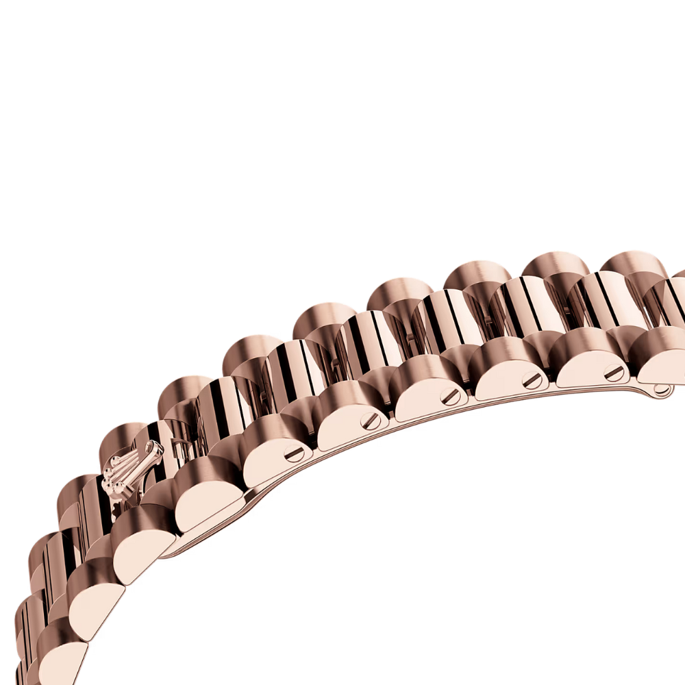 - Bracelet: President bracelet in 18K Everose Gold, with concealed Crownclasp