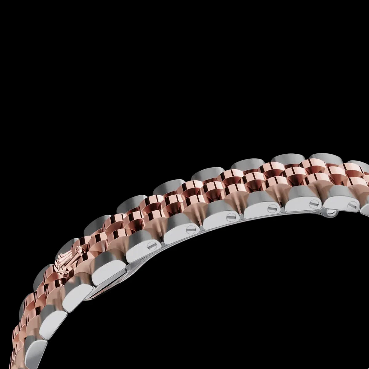 • Bracelet: Jubilee (5-piece link) Everose Rolesor; concealed Crownclasp with Easylink 5 mm extension