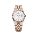 The Rolex Land-Dweller 40 mm Everose Gold Ref. 127335 showcases the harmony of refined materials and timeless design. Crafted entirely from 18 kt Everose gold—Rolex’s proprietary rose gold alloy—this 40 mm Oyster case delivers a warm, distinguished glow that stands out while remaining elegant. Its fluted bezel and balanced proportions make it a versatile choice, blending everyday practicality with a strong sense of prestige.